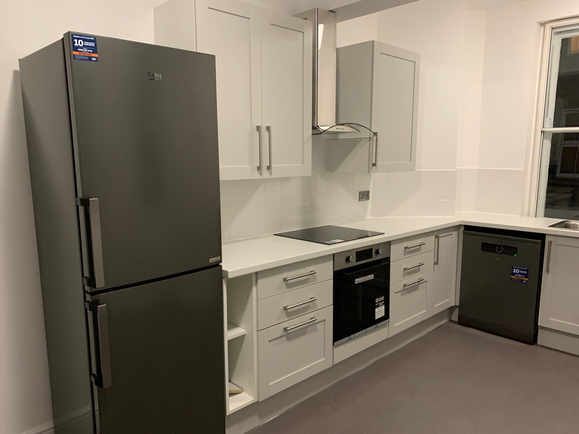 Supply and fit new fuseboard, then replace fans to both kitchens and bathrooms. Supply and fit new light fittings throughout along with carbon monoxide devices. - Remove existing floor coverings and replace to client’s preferences.